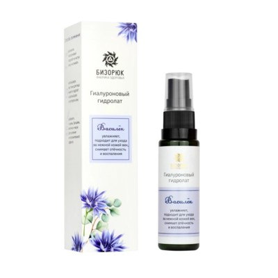 Гидролат «Бизорюк» «Василёк» – прекрасное средство для бережного ухода за чувствительной кожей лица. Активные компоненты, входящие в состав, ценятся за свои способности успокаивать эпидермис, выравнивая его тон, питая и увлажняя на глубоком уровне. Считается, что гидролат при нанесении на область вокруг глаз снимает отёчности, а также разглаживает мелкие морщинки. Василёк также может помочь при обработке кожи после депиляции, успокаивая воспаления.