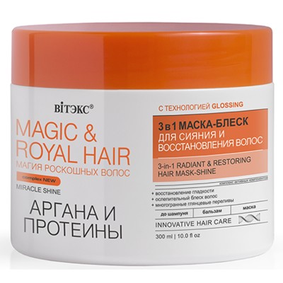 Витэкс MAGIC&ROYAL HAIR Маска-блеск для сияния и восстановления волос АРГАНА и ПРОТЕИНЫ 3в1 , 300 мл